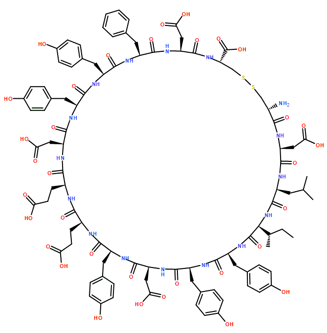 (4R,7S,10S,13S,16S,19S,22S,25S,28S,31S,34S,37S,40S,43S,46S,49R)-49-Amino-10-benzyl-40-[(2S)-butan-2-yl]-22,25-bis(2-carboxyethyl)-7,19,31,46-tetrakis(carboxymethyl)-13,16,28,34,37-pentakis[(4-hydroxyphenyl)methyl]-43-(2-methylpropyl)-6,9,12,15,18,21,24,27,30,33,36,39,42,45,48-pentadecaoxo-1,2-dithia-5,8,11,14,17,20,23,26,29,32,35,38,41,44,47-pentadecazacyclopentacontane-4-carboxylic acid 95%