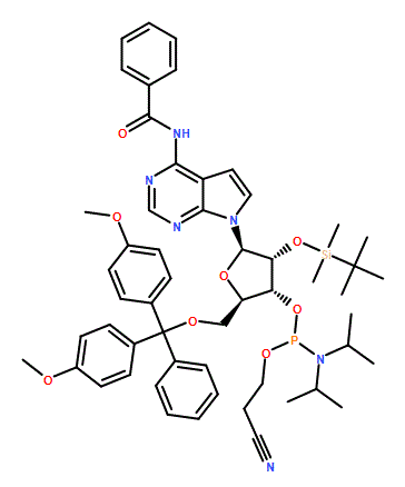 N-[7-[(2R,3R,4R,5R)-5-[[Bis(4-methoxyphenyl)-phenylmethoxy]methyl]-3-[tert-butyl(dimethyl)silyl]oxy-4-[2-cyanoethoxy-[di(propan-2-yl)amino]phosphanyl]oxyoxolan-2-yl]pyrrolo[2,3-d]pyrimidin-4-yl]benzamide 95%