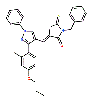 (5Z)-3-Benzyl-5-[[3-(2-methyl-4-propoxyphenyl)-1-phenylpyrazol-4-yl]methylidene]-2-sulfanylidene-1,3-thiazolidin-4-one 95%