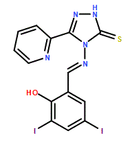 2,4-Diiodo-6-[(E)-{[3-(pyridin-2-yl)-5-sulfanyl-4H-1,2,4-triazol-4-yl]imino}methyl]phenol 95%