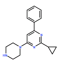 2-Cyclopropyl-4-phenyl-6-(piperazin-1-yl)pyrimidine 95%