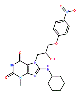 8-(Cyclohexylamino)-7-[2-hydroxy-3-(4-nitrophenoxy)propyl]-3-methyl-3,7-dihydro-1H-purine-2,6-dione 95%